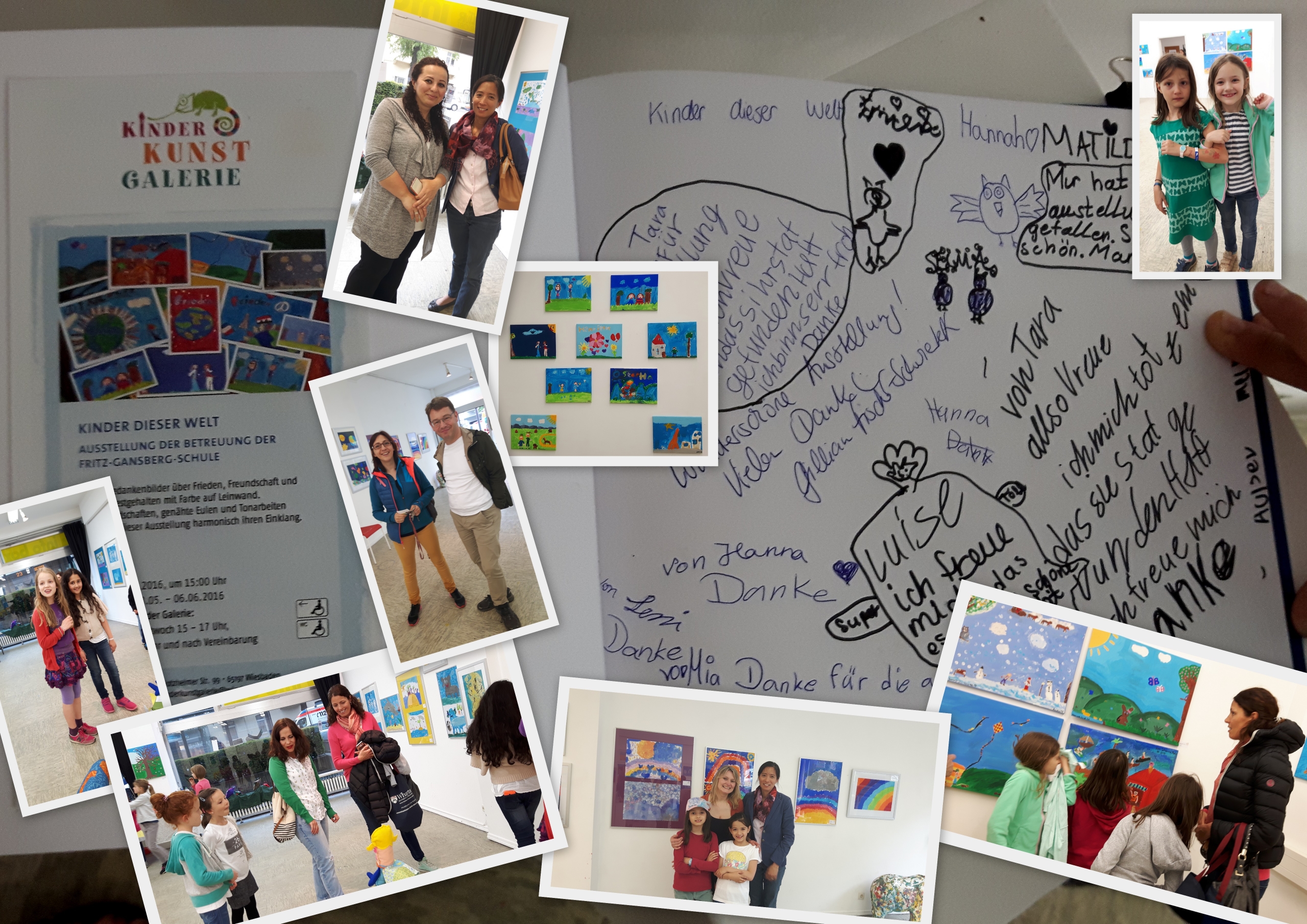Kleine Gedankenbilder über Frieden, Freundschaft & Familie von den Kinder festgehalten auf Leinwand. Tiere und Landschaften fanden ebenfalls in dieser Ausstellung harmonisch ihren Einklang. Die Vernissage begann am 13.05.2016 an der viele Eltern mit Ihren Kindern erschienen. Die Ausstellung war ein überwältigendes Erlebnis für alle Beteiligten ...